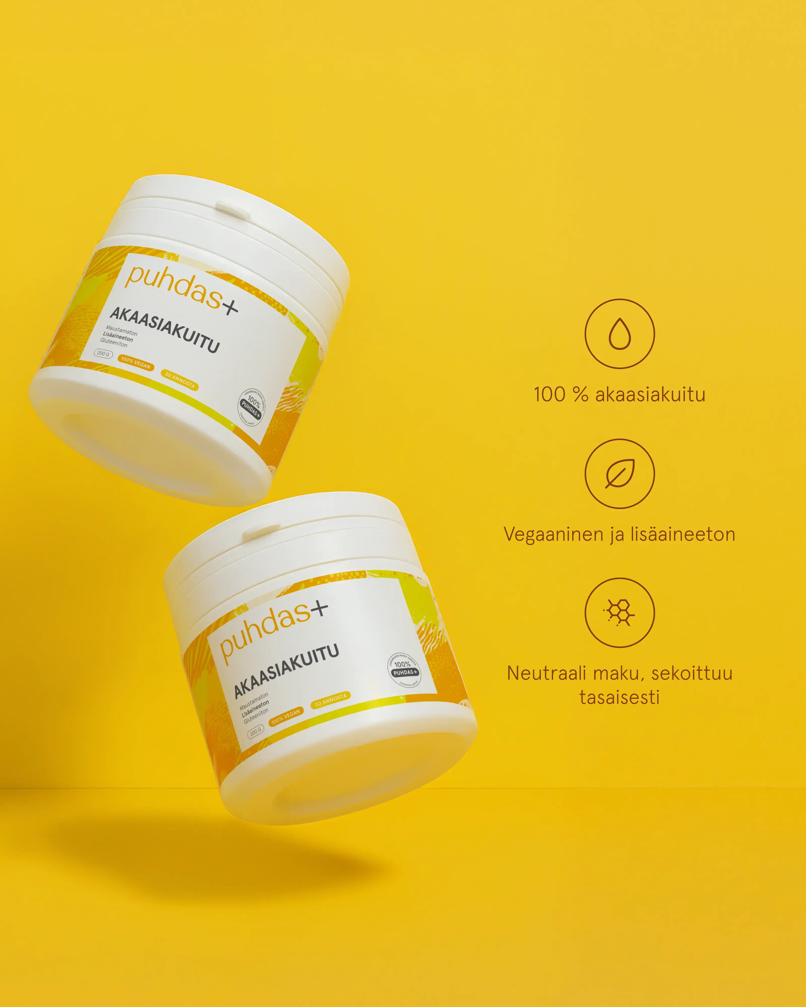Akaasiakuitu on täysin gluteeniton kuitu. Tuotetta voi käyttää lisäkuidun lähteenä esimerkiksi gluteenittomassa, viljattomassa tai VHH-ruokavaliossa. Akaasiakuitu on maultaan neutraali, ja se sekoittuu hyvin nesteeseen. Monesta muusta kuidusta poiketen akaasiakuitu ei turpoa nesteessä. Sen voi sekoittaa esimerkiksi smoothieen tai veteen. Ei mitään lisättyä, 100% akaasiakuitu.