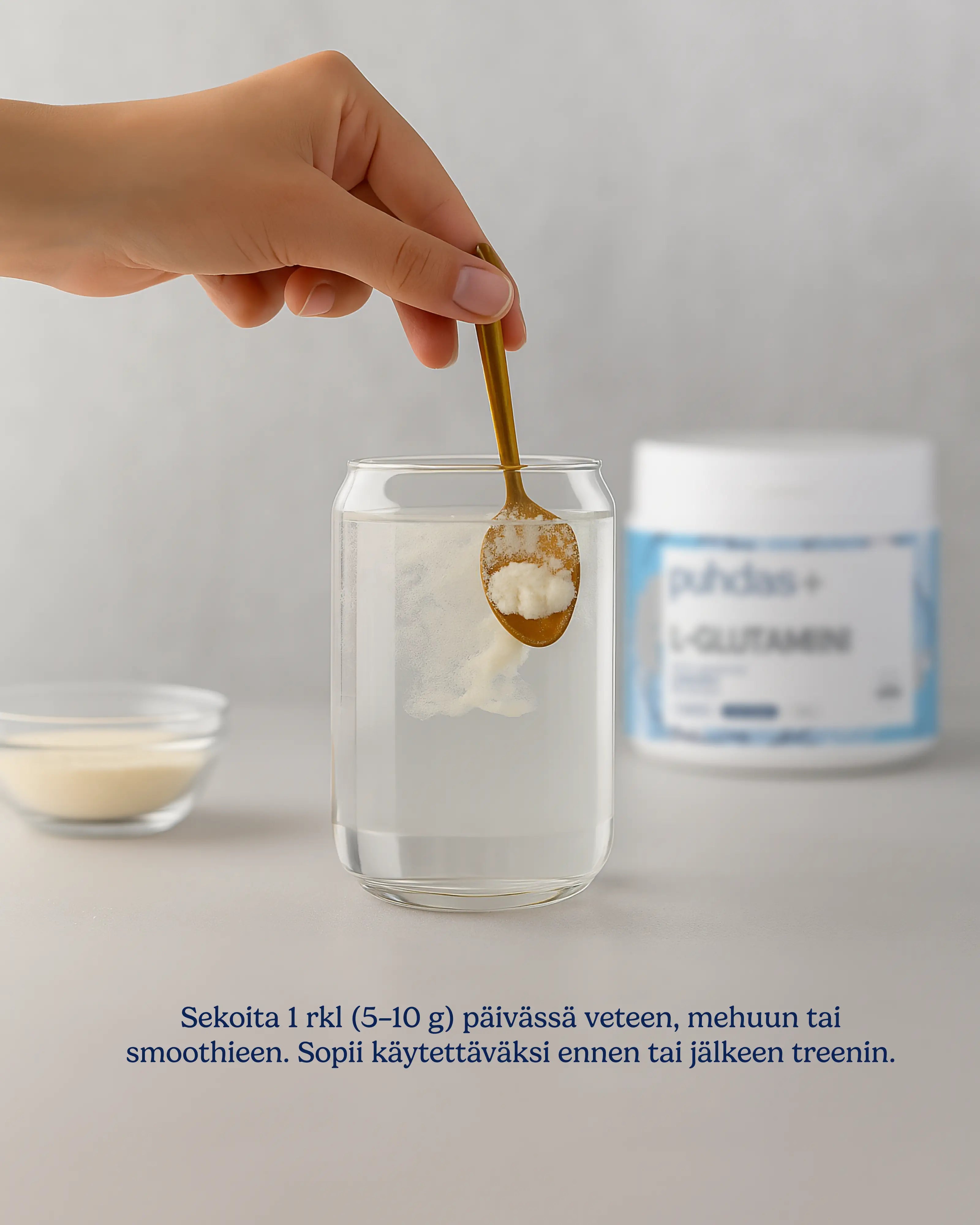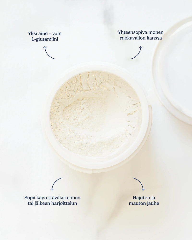 Puhdas+ L-glutamine contains well-absorbed, free-form L-glutamine.