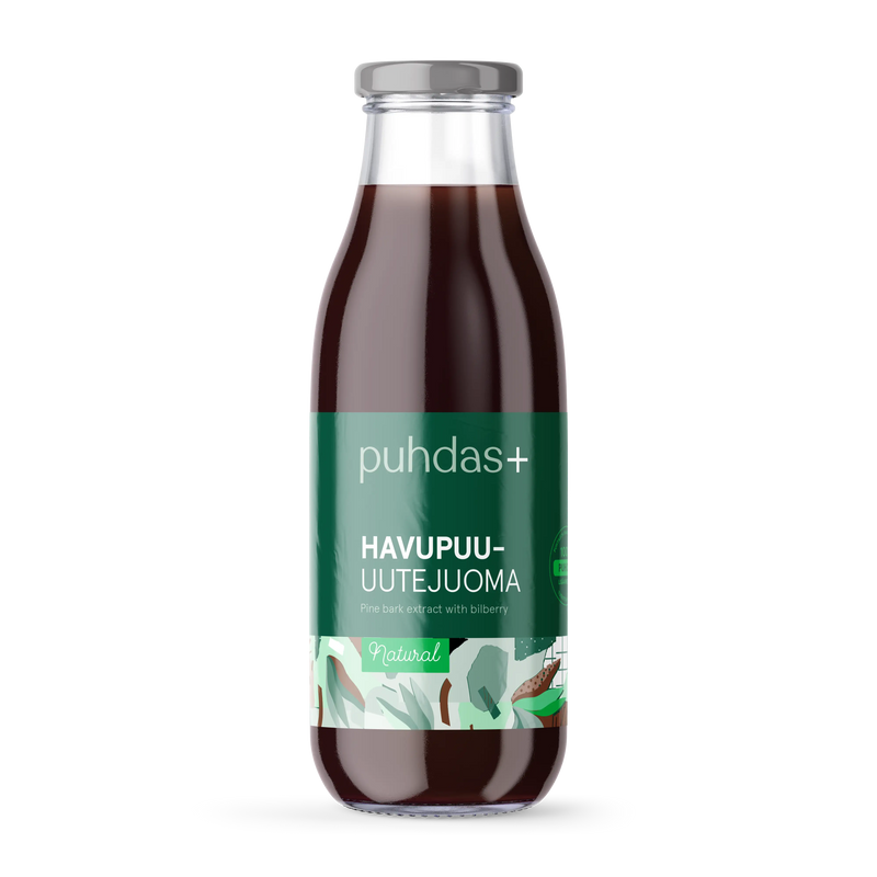 Puhdas+ Coniferous extract drink is made from Finnish pine trees. It is made in Etelä-Savo in the middle of clean forests and next to clear waterways.