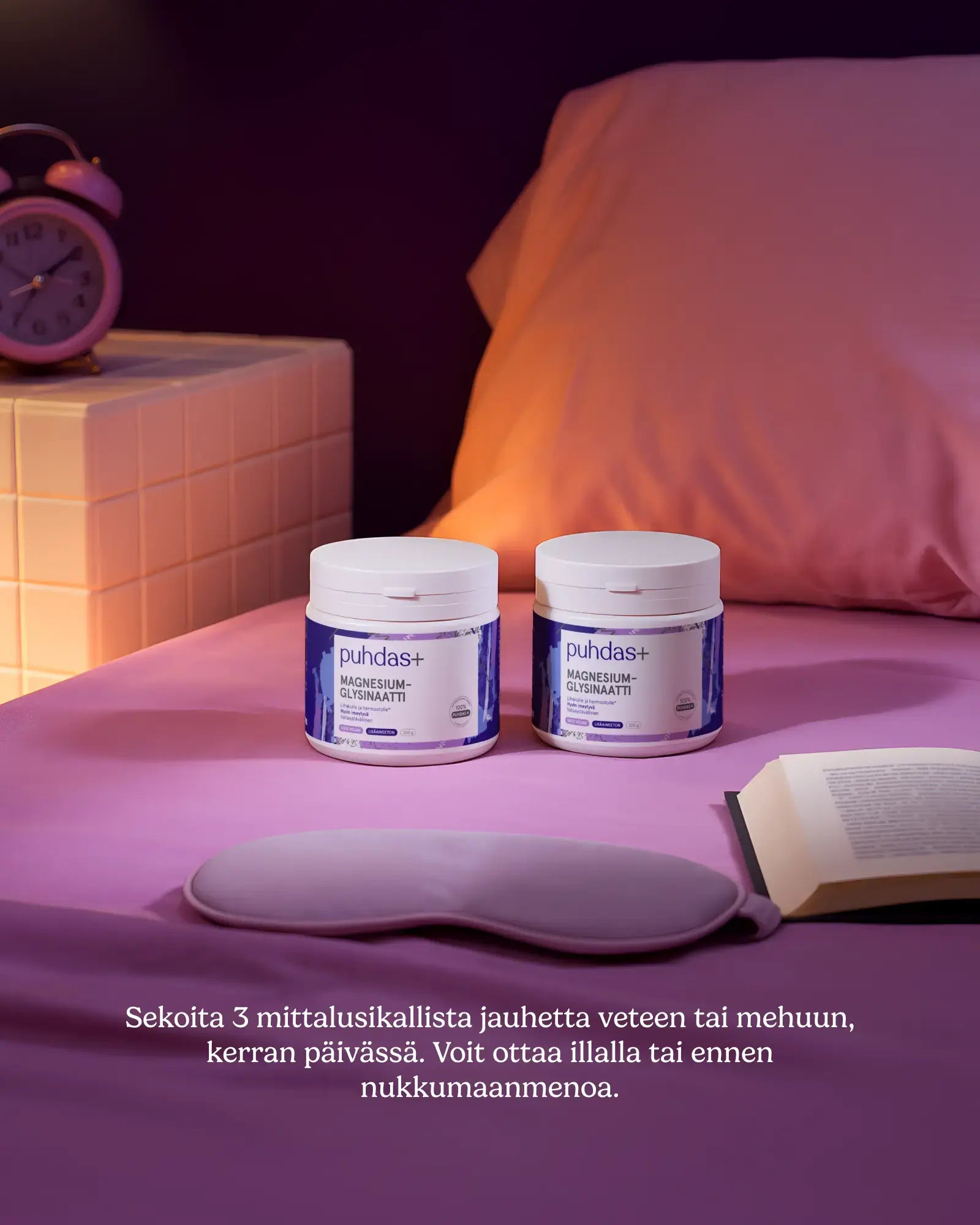 Strong and 100% additive-free Puhdas+ Magnesium glycinate powder. Magnesium glycinate is a highly absorbable form of magnesium that is used specifically to support sleep quality. Magnesium promotes normal muscle function and helps reduce fatigue and exhaustion. Does not contain ingredients of animal origin. Enjoy in the evening before going to bed.