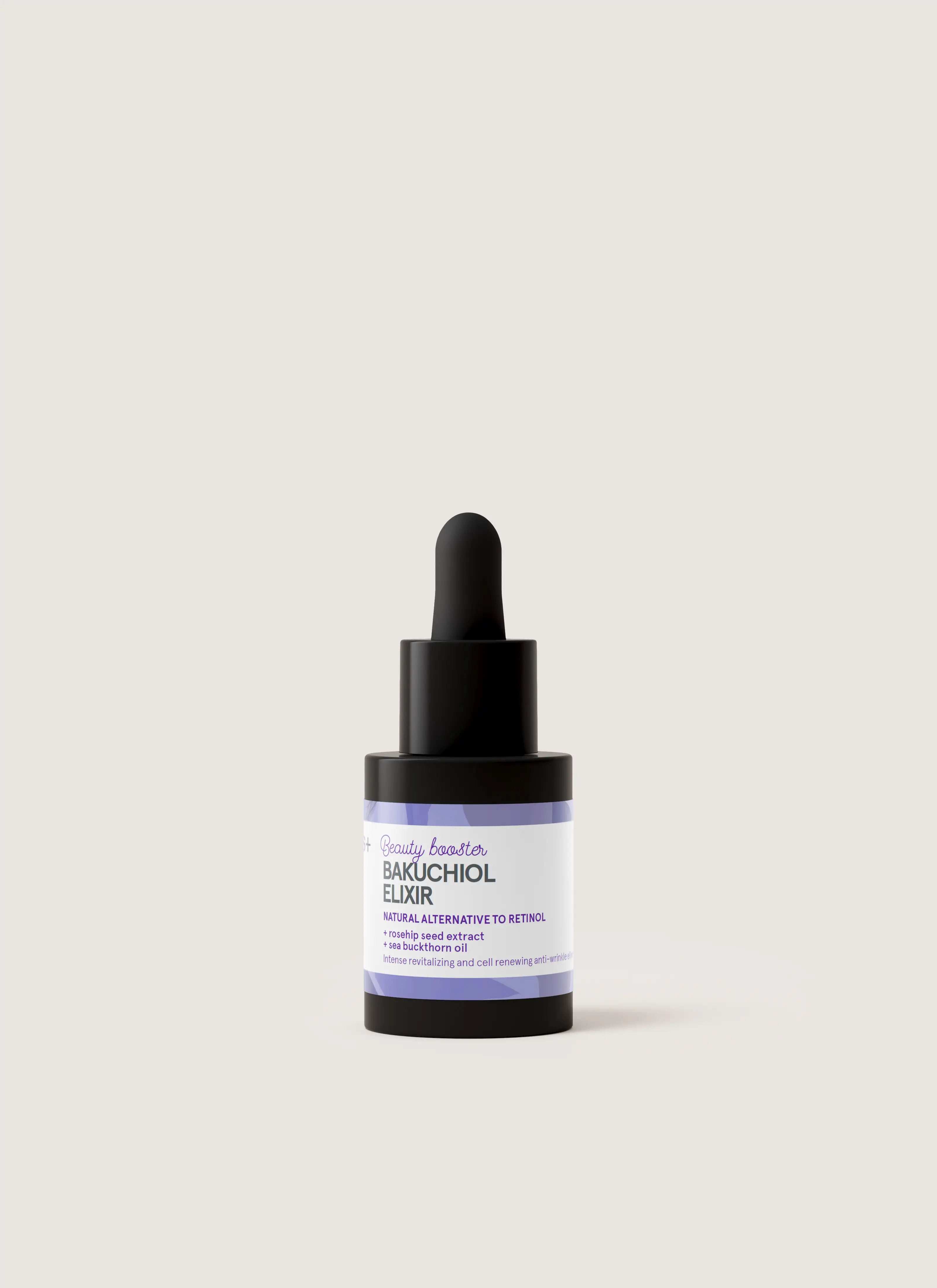 Puhdas+ Bakuchiol Elixir is a light but extremely effective skin brightener and cell regenerator. This highly effective product strengthens collagen production, firms, brightens and gently smoothes the skin. The sea buckthorn oil in the serum effectively moisturizes, the rosemary extract soothes and the rosehip extract balances the skin. Organic almond, jojoba and sunflower seed oils care for the skin. Made in Finland at the EcoSert factory.