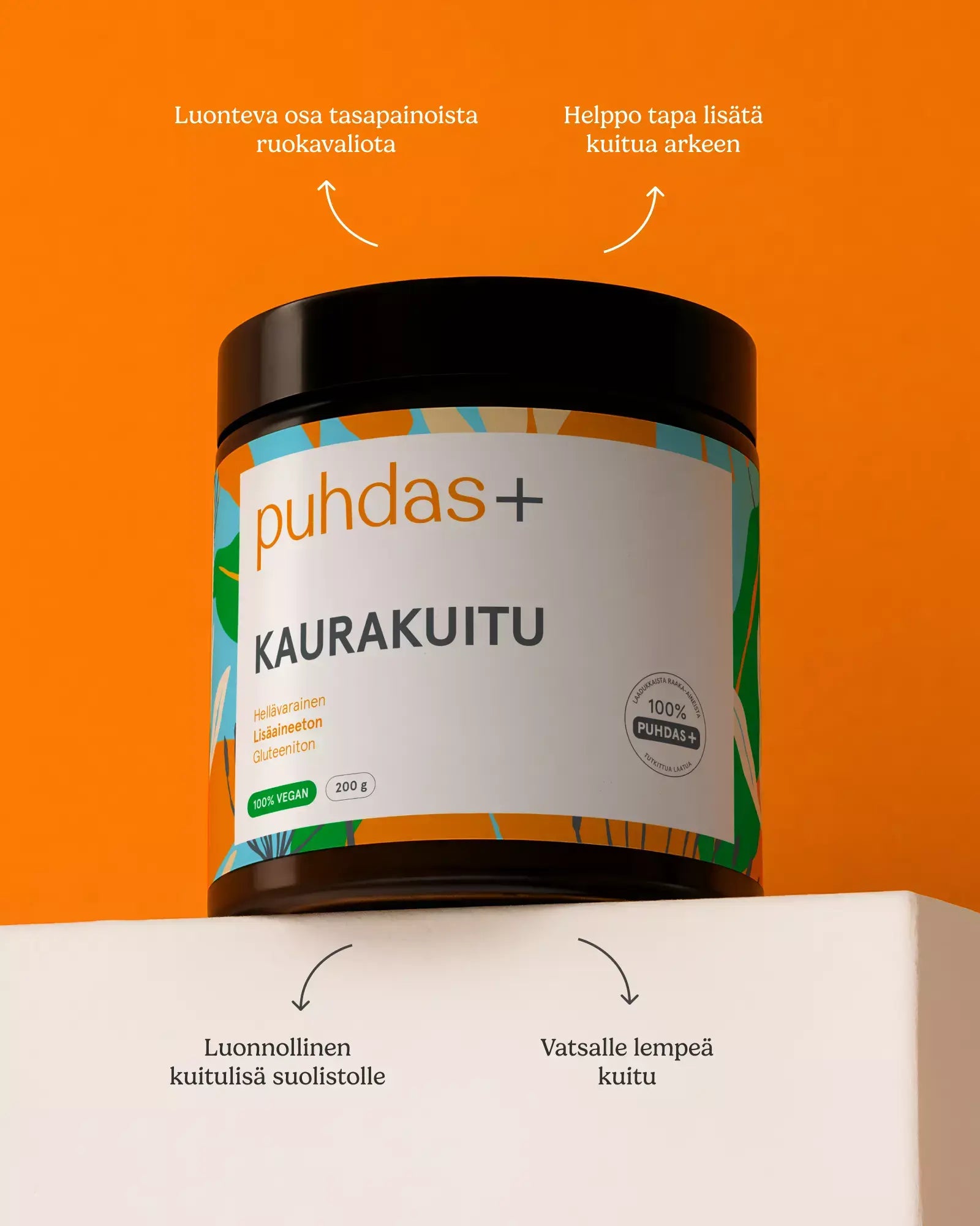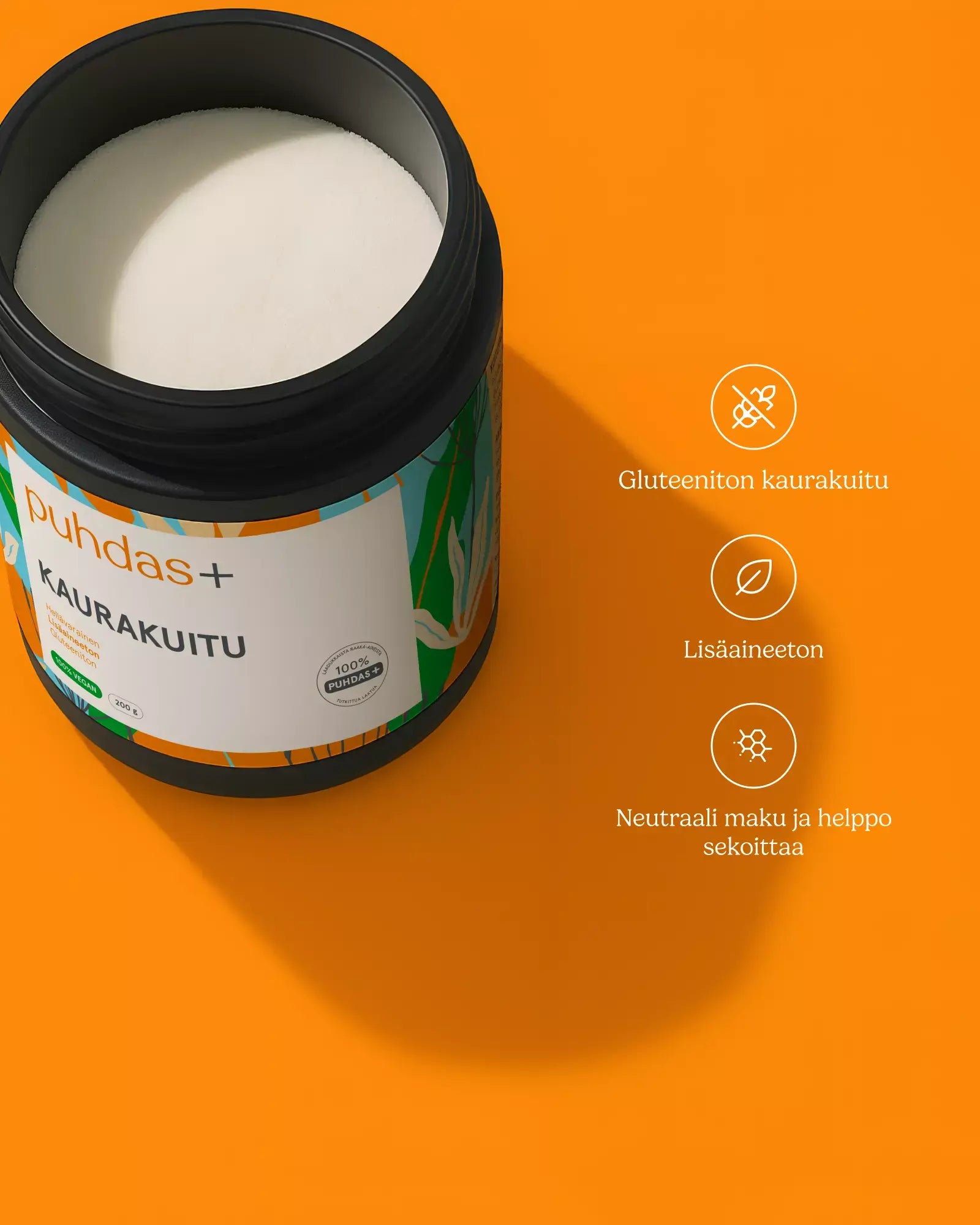 Puhdas+ Oat fiber is gluten-free and therefore suitable as a source of additional fiber for many. The fiber must not swell too much, so that it does not burden the walls of the sensitive intestine. Oat fiber was tested before entering the market in a test group. All members of the test group were able to use Puhdas+ Kaurakuitu with good results. The product does not swell in liquid, so it is also suitable for people with very sensitive stomachs.