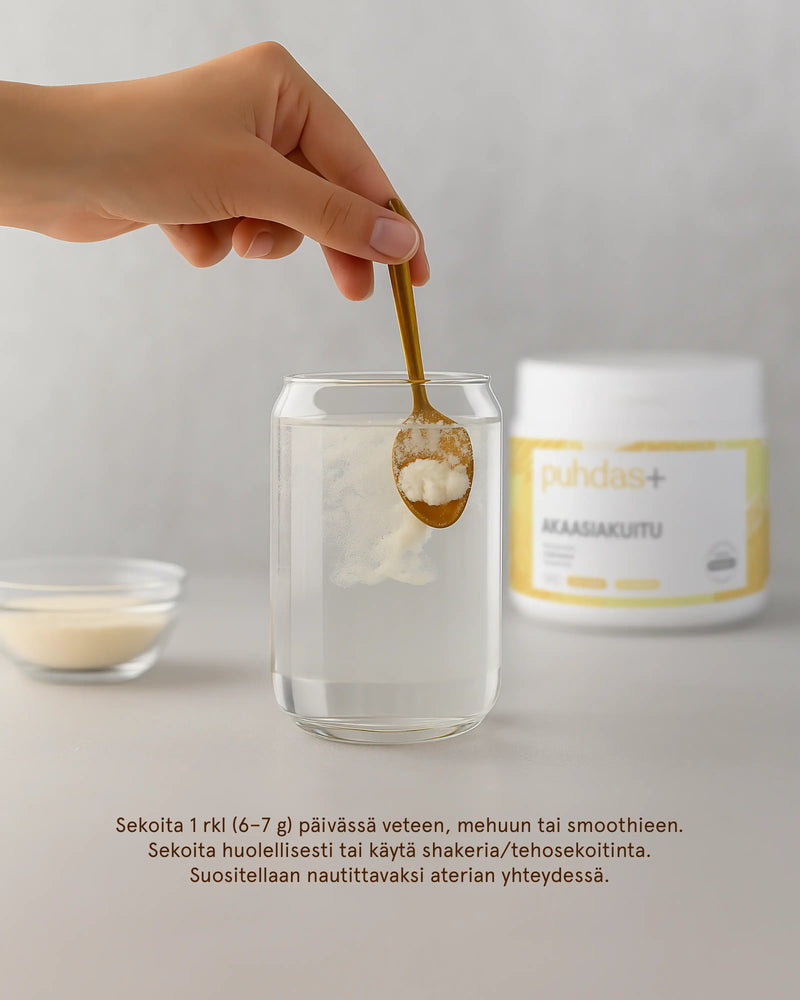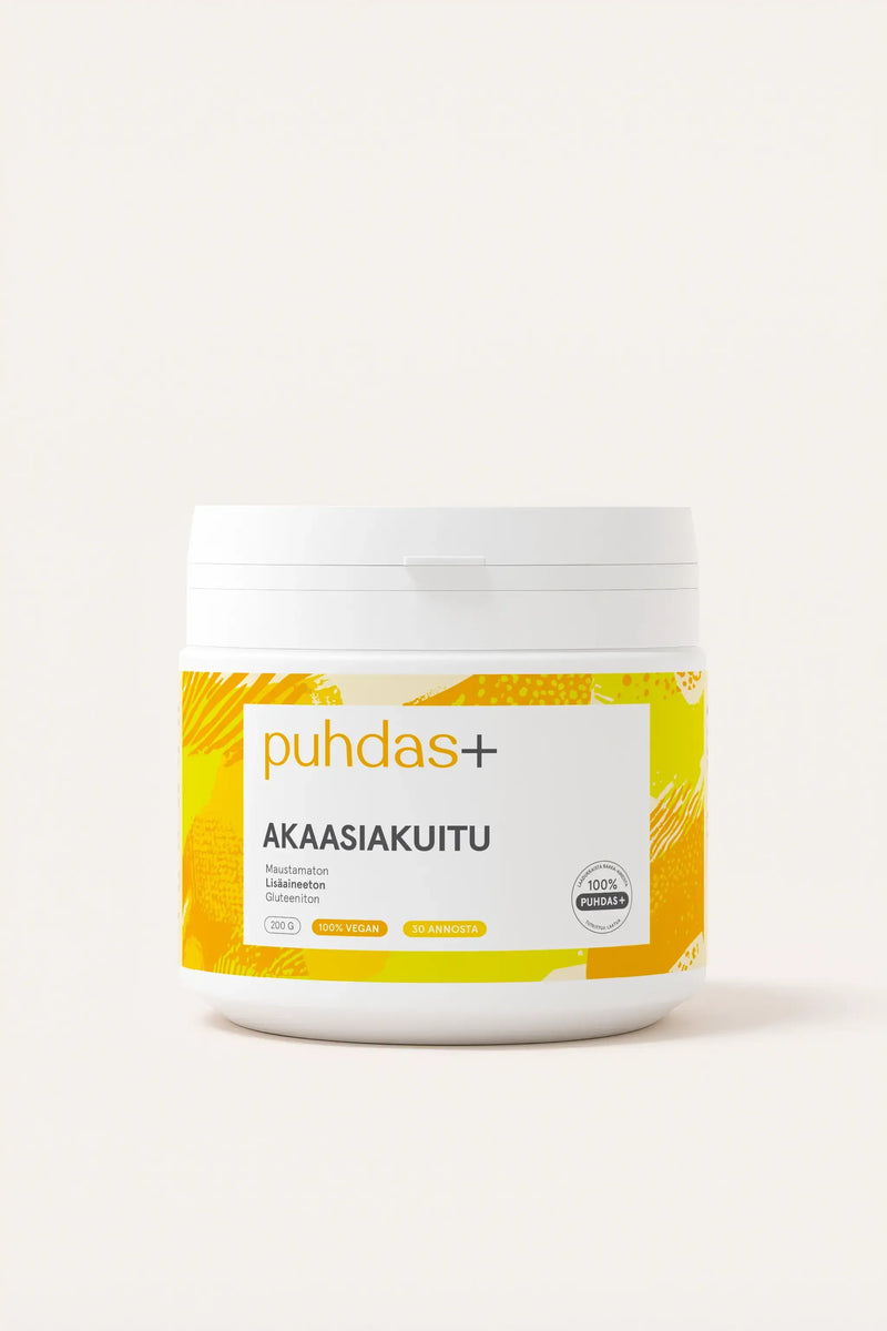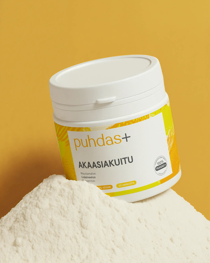 Akaasiakuitu on täysin gluteeniton kuitu. Tuotetta voi käyttää lisäkuidun lähteenä esimerkiksi gluteenittomassa, viljattomassa tai VHH-ruokavaliossa. Akaasiakuitu on maultaan neutraali, ja se sekoittuu hyvin nesteeseen. Monesta muusta kuidusta poiketen akaasiakuitu ei turpoa nesteessä. Sen voi sekoittaa esimerkiksi smoothieen tai veteen. Ei mitään lisättyä, 100% akaasiakuitu.