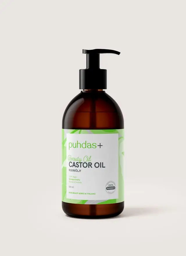 Puhdas+ Beauty Oil Risiiniöljy kosteuttaa, ravitsee ja vahvistaa! Valmiste sisältää korkealaatuista risiinikasvin siemenistä kylmäpuristettua öljyä, jota käytetään tukemaan ripsien, kynsien ja hiusten hyvinvointia. Se vahvistaa, antaa kiiltoa ja edistää ripsien sekä hiusten kasvua. Ravinteikas risiiniöljy hoitaa tehokkaasti myös kuivaa ja ärtynyttä ihoa. Sopii myös parran ja viiksien hoitoon. 100 % vegaaninen ja heksaaniton.