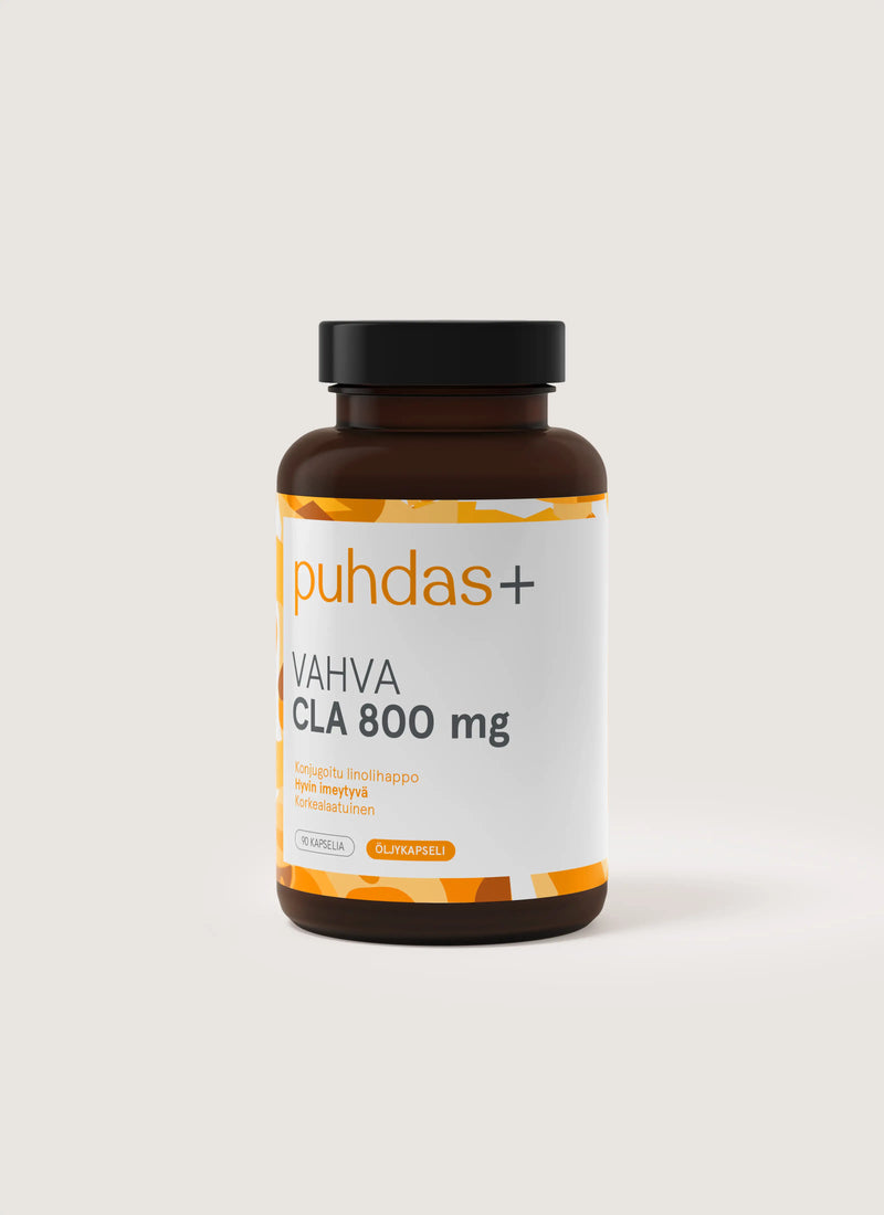 Puhdas+ CLA on korkealaatuinen ja hyvinimeytyvä. Se on tehty safloriöljystä. Vuorokausiannos 3 kapselia sisältää 2400 mg CLA:ta.