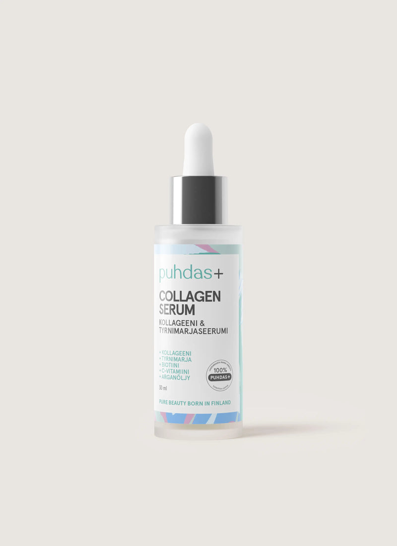 Kollageenia sisältävä ylellinen ja tehokas seerumi kasvoille ja decolte-alueelle. Tyrnimarja pehmentää, virkistää ja ravitsee ihoa sekä lisää tehokkaasti ihon kimmoisuutta. Tyrnimarja on vahva, välttämättömien rasvahappojen lähde. Se sopii erityisesti kuivalle iholle. Seerumi sisältää myös runsaasti biotiinia ja C-vitamiinia. Ei mineraaliöljyjä, ei parabeeneja. Valmistettu Suomessa.
