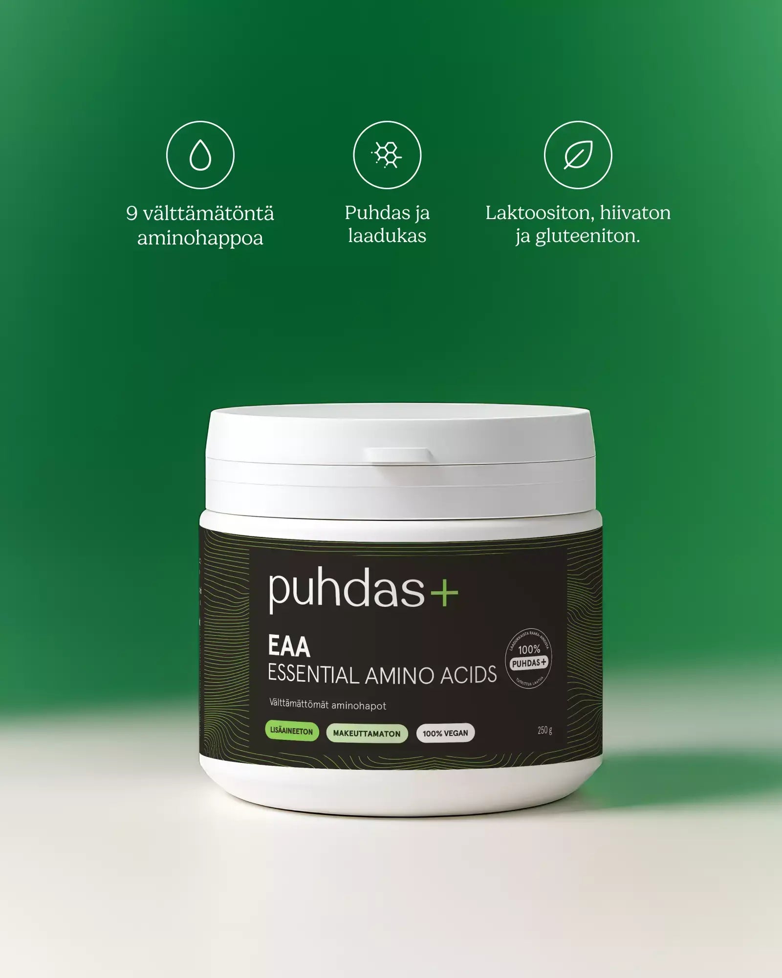 EAA (essential amino acids) eli välttämättömät aminohapot ovat ihmiselle elintärkeitä aminohappoja, joita se ei pysty itse valmistamaan, joten niitä on saatava ravinnosta.