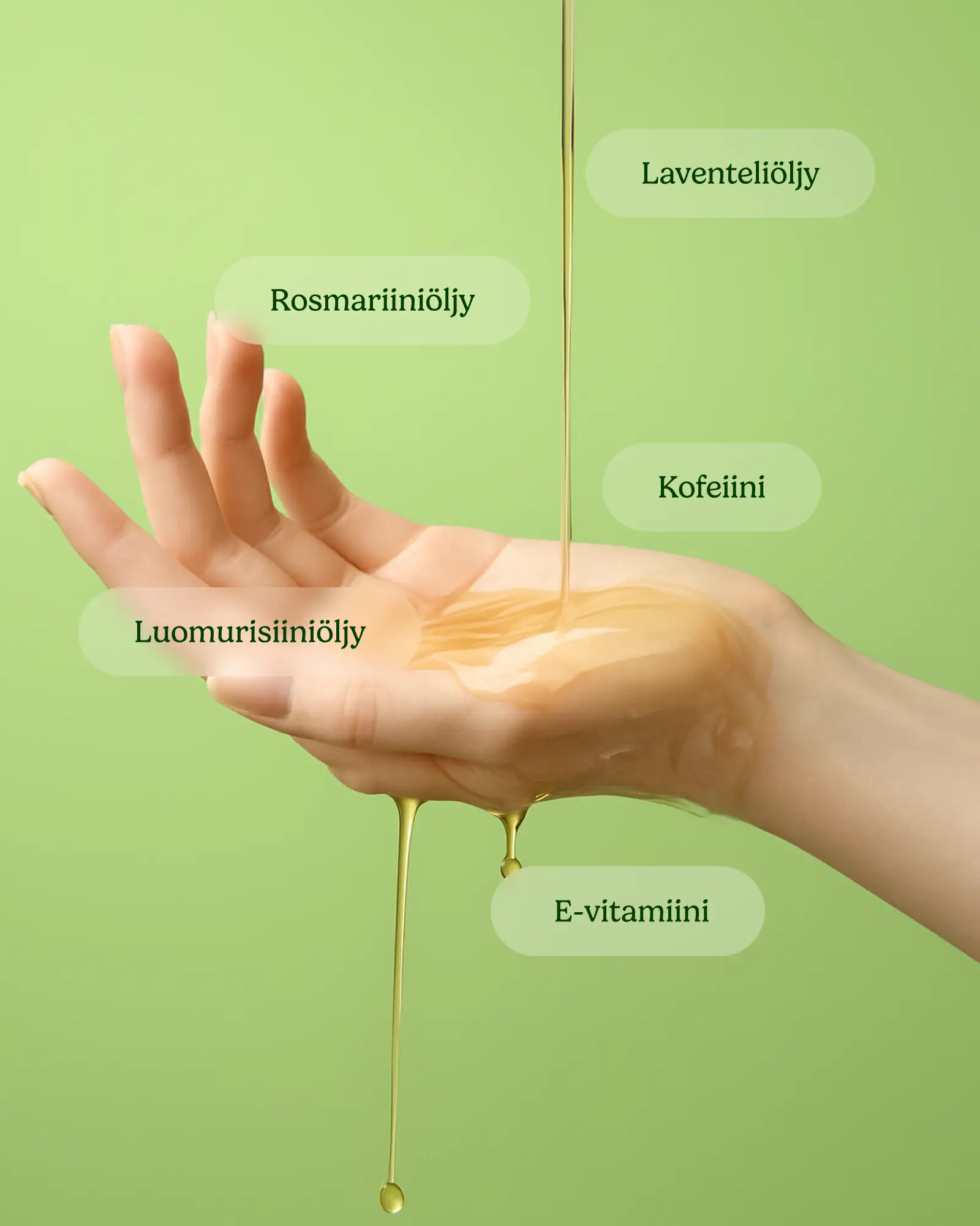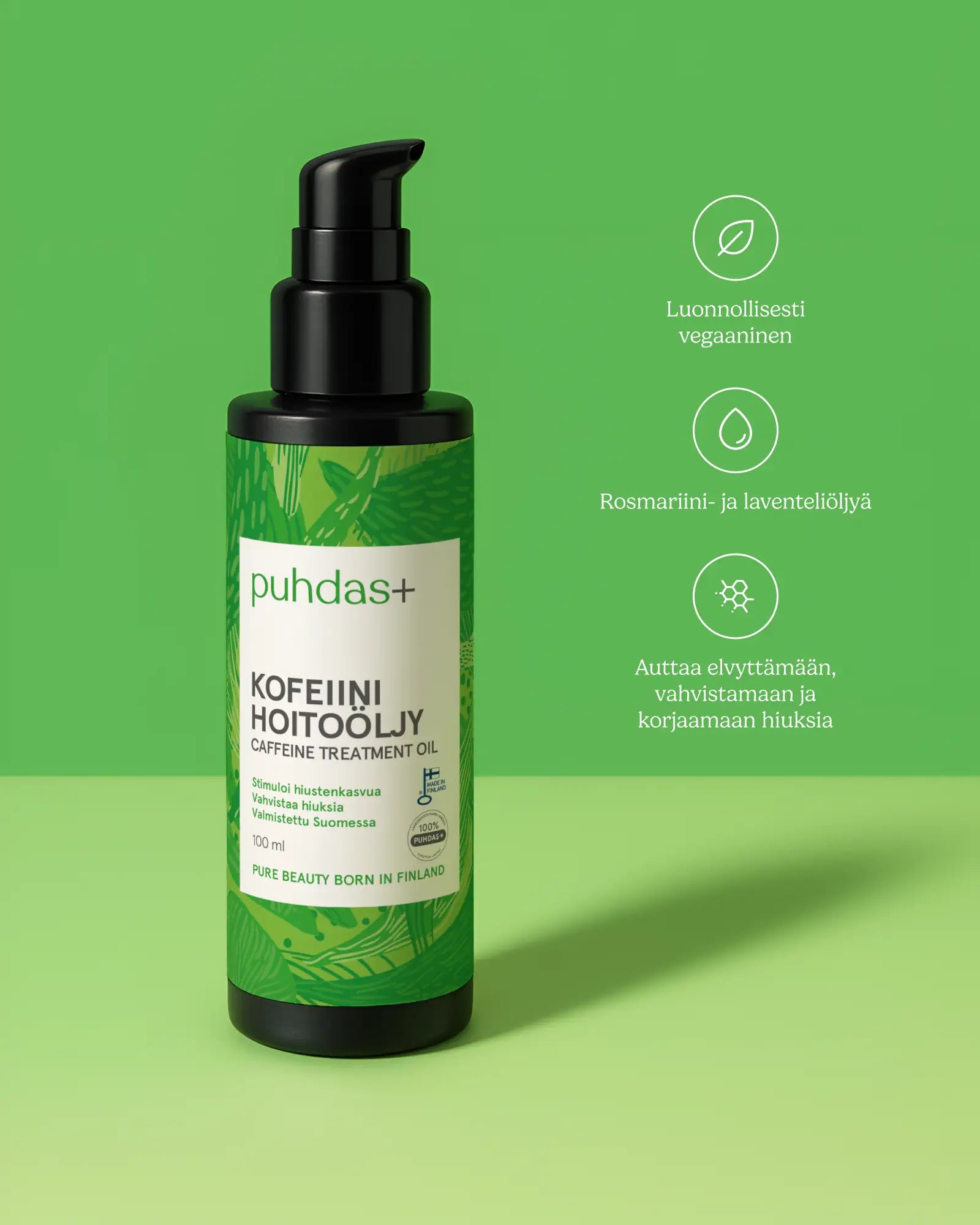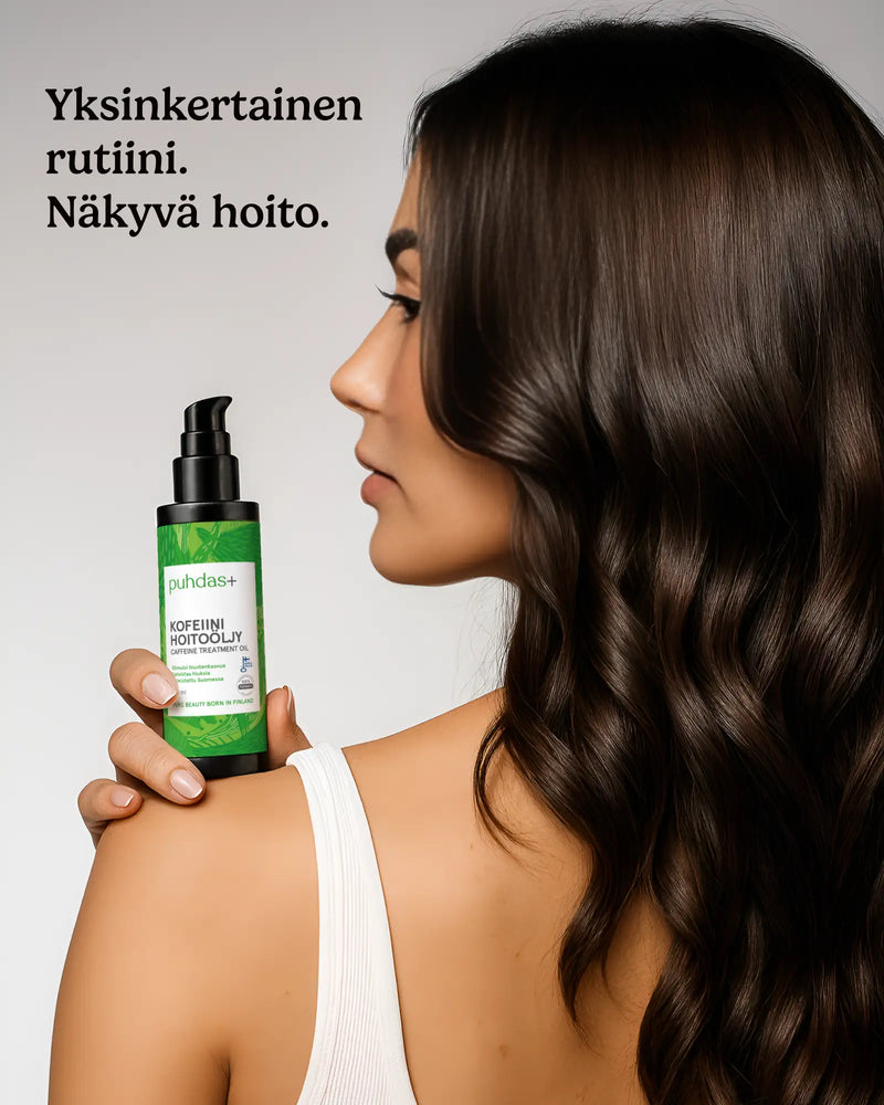 Kotimainen kofeiinia sisältävä hoitoöljy hiuksille!