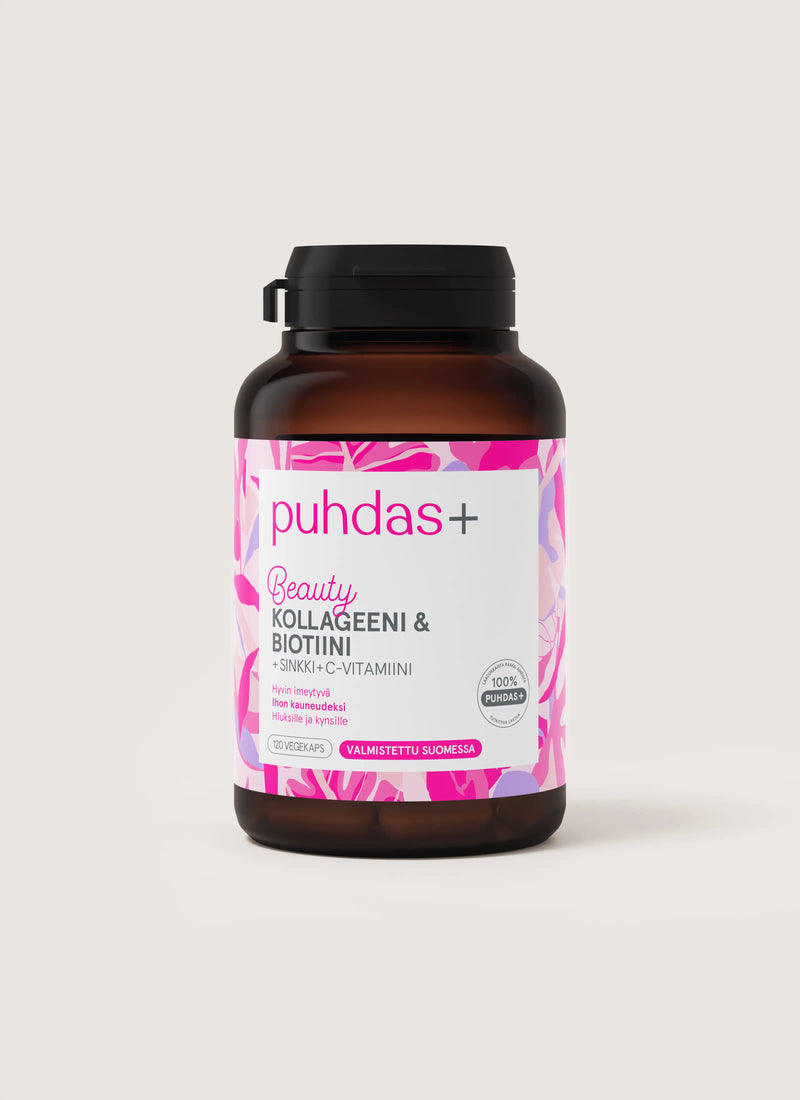 Puhdas+ kollageenituotteet sisältävät tutkittua, hydrolysoitua eli bioaktiivista 1. tyypin kollageenia. Käyttämämme raaka-aine on yksi maailman tunnetuimmista ja tutkituimmista kollageeneista, jonka teho on todettu lukuisissa kliinisissä tutkimuksissa. Tuotteessa käytetty kollageeni on Ranskalaista Peptan®-kollageenia.