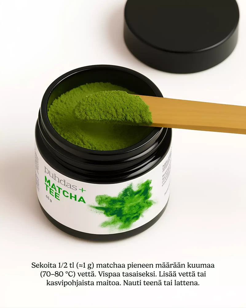 Puhdas+ Matcha tee sisältää korkealaatuista ja ravinteikasta Matchaa. Yksi kupillinen Matcha teetä vastaa positiivisilta vaikutuksiltaan 7-10 kupillista tavallista vihreää teetä.