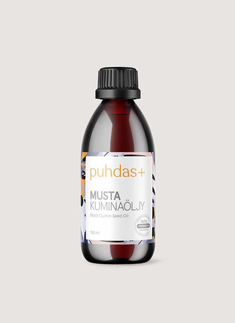 Puhdas+ Mustakuminaöljy on erittäin ravintorikas ja korkealaatuinen öljy. Sitä voidaan käyttää ravintolisän tapaan sisäisesti nautittuna, ruokaöljynä, tai mausteena. Maultaan öljy on hienostuneen mieto, mutta hieman pippurinen ja karvas. Älä kuumenna öljyä, sillä lämpö tuhoaa öljyn herkkiä rasvahappoja.