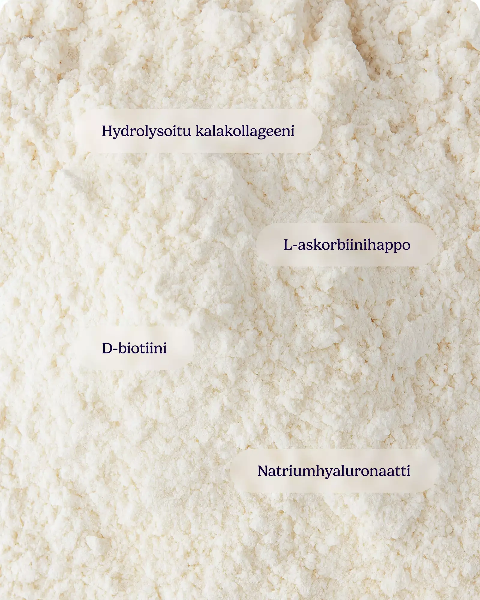 Käyttämämme raaka-aine on yksi maailman tunnetuimmista ja tutkituimmista kollageeneista, jonka teho on todettu lukuisissa kliinisissä tutkimuksissa. Tuotteessa käytetty kollageeni on Ranskalaista Peptan®-kollageenia.