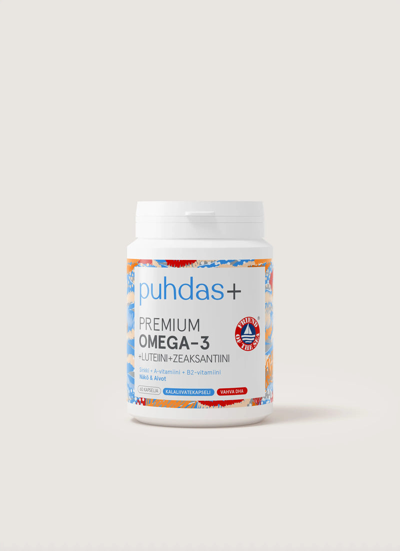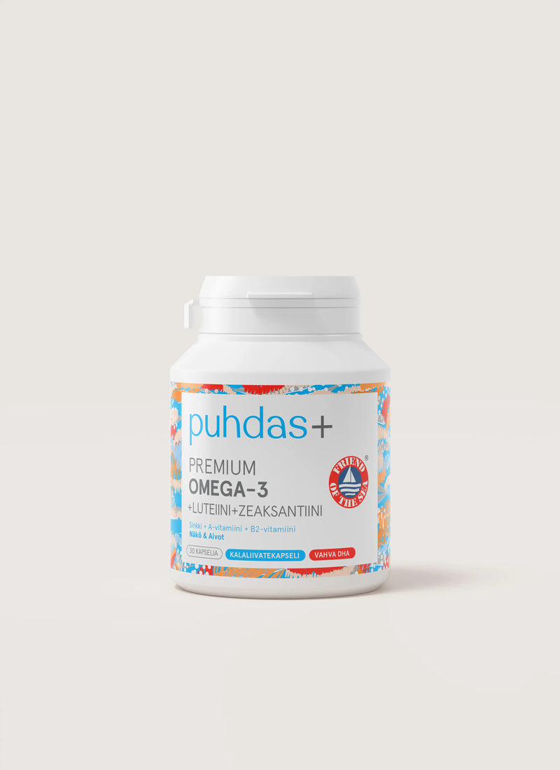 Monipuolinen valmiste silmille ja aivoille! Puhdas+ Premium Omega-3 +Luteiini ja Zeaksantiini on ekologinen, puhdas ja sertifoitu kalaöljykapseli.