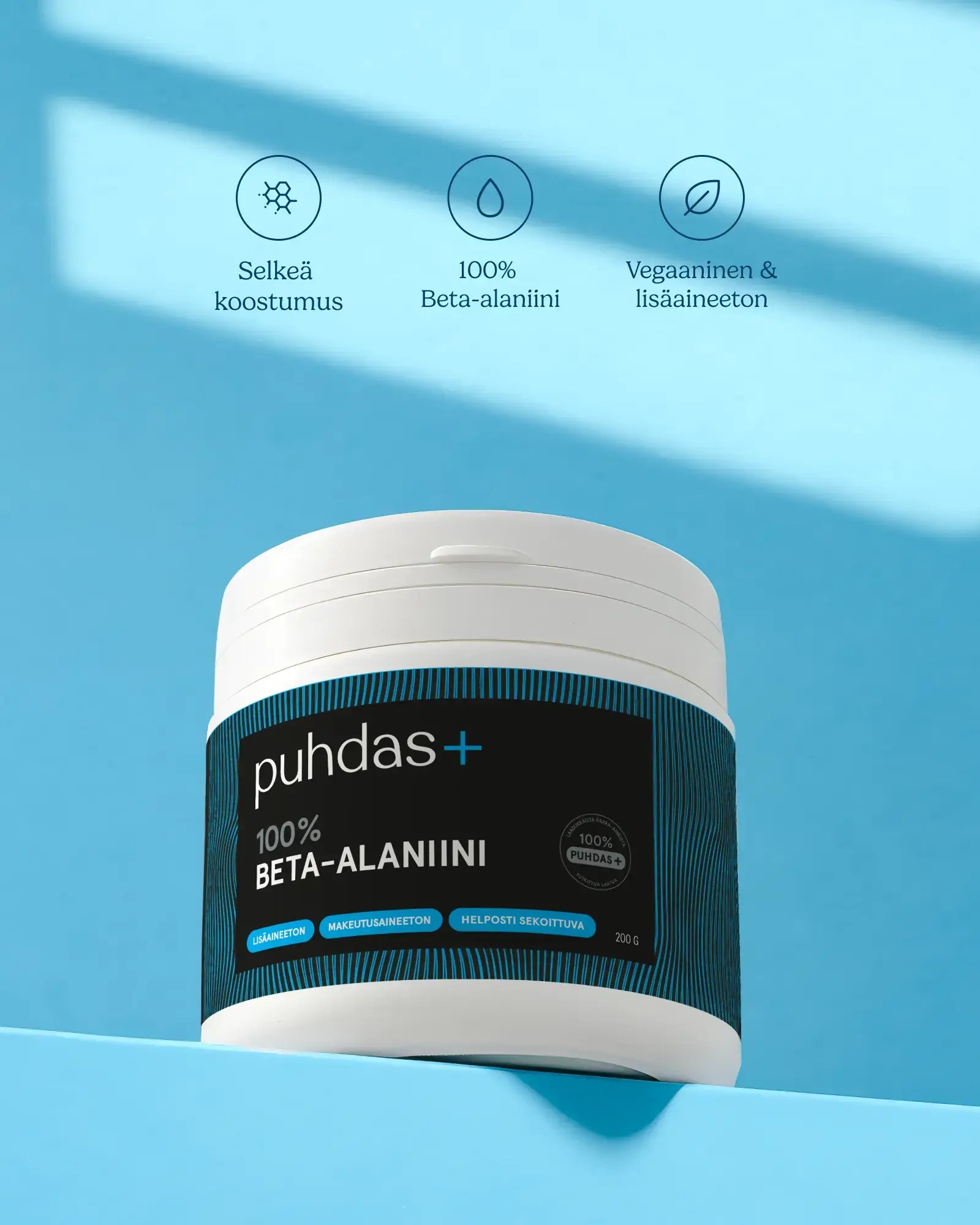 Maustamaton ja lisäaineeton 100% beta-alaniinijauhe. 3-aminopropaanihappo eli β-alaniini on aminohappoihin kuuluva orgaaninen yhdiste. Tuote sopii erityisesti lyhytkestoisiin voima- ja teholajeihin.