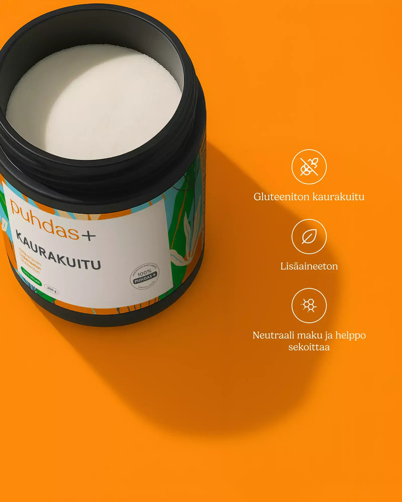 Puhdas+ Kaurakuitu on gluteeniton ja siksi se sopii lisäkuidun lähteeksi monelle. Kuitu ei saa turvota liikaa, jolloin se ei kuormita herkän suoliston seinämiä. Kaurakuitu testattiin ennen markkinoilletuloa testiryhmässä. Kaikki testiryhmän jäsenet pystyivät käyttämään Puhdas+ Kaurakuitua hyvin tuloksin. Tuote ei turpoa nesteessä, jolloin se sopii myös erittäin herkkävatsaisille.