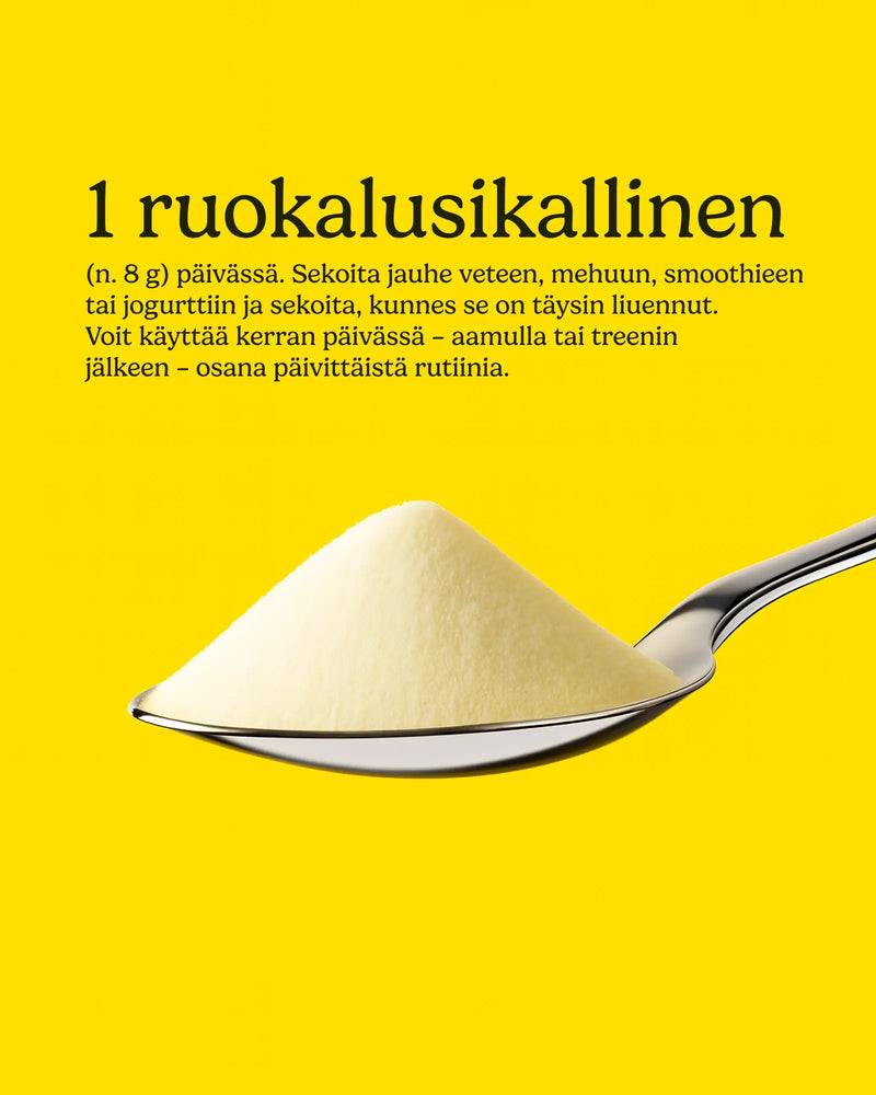 100% lisäaineeton ja korkealaatuinen kollageenijauhe! Bioaktiivinen Puhdas+ Sport Collagen sisältää hydrolysoitua Peptan® nautakollageenia. Kollageeni muodostaa 30 % ihmisen elimistön proteiinista ja sitä löytyy erityisesti luista, lihaksista, jänteistä ja ihosta. Noin 25 vuoden iässä elimistö alkaa menettää kykynsä tuottaa uutta kollageenia. Maustamaton Puhdas+ Sport Collagen on monikäyttöinen kollageeni- ja proteiinilisä. Proteiini edistää lihasmassan kasvua ja säilymistä sekä luuston pysymistä normaalina. Sekoita smoothien, kahvin tai muun nesteen joukkoon. Sisältää n. 31 annosta.