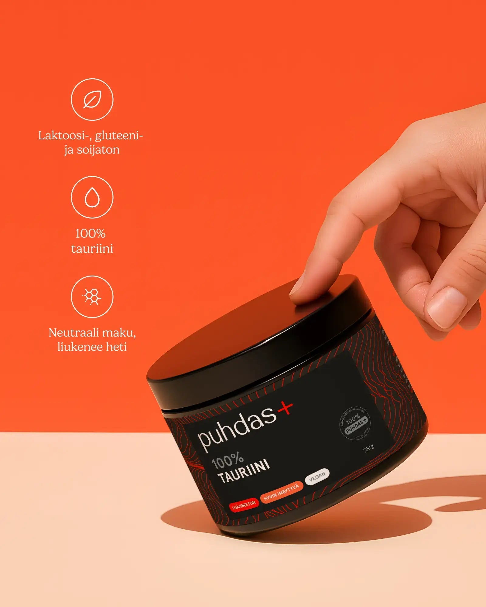 100% tauriinijauhe, ilman makeutus- tai lisäaineita. Tauriini sopii erityisesti urheilijoille ja kuntoilijoille.