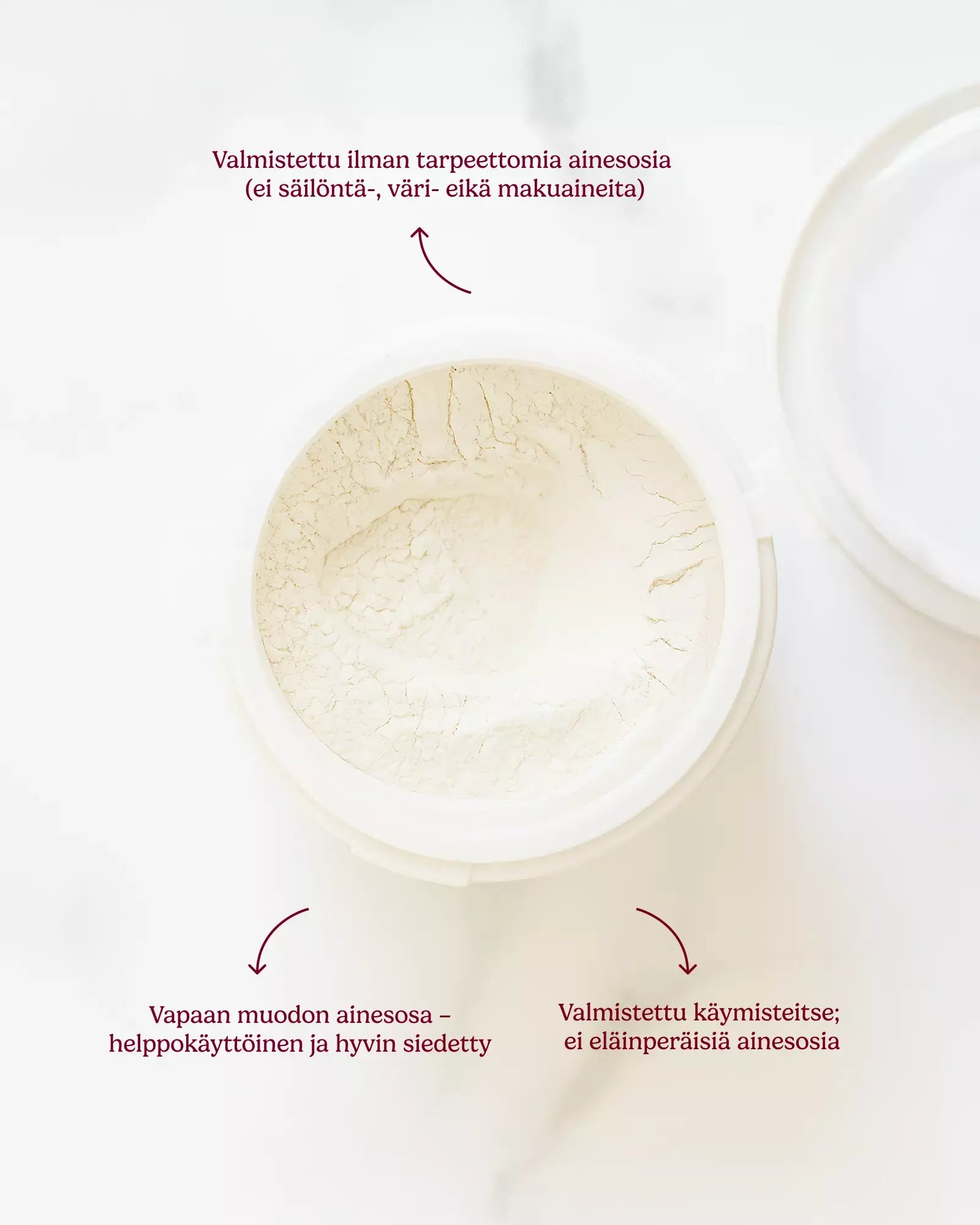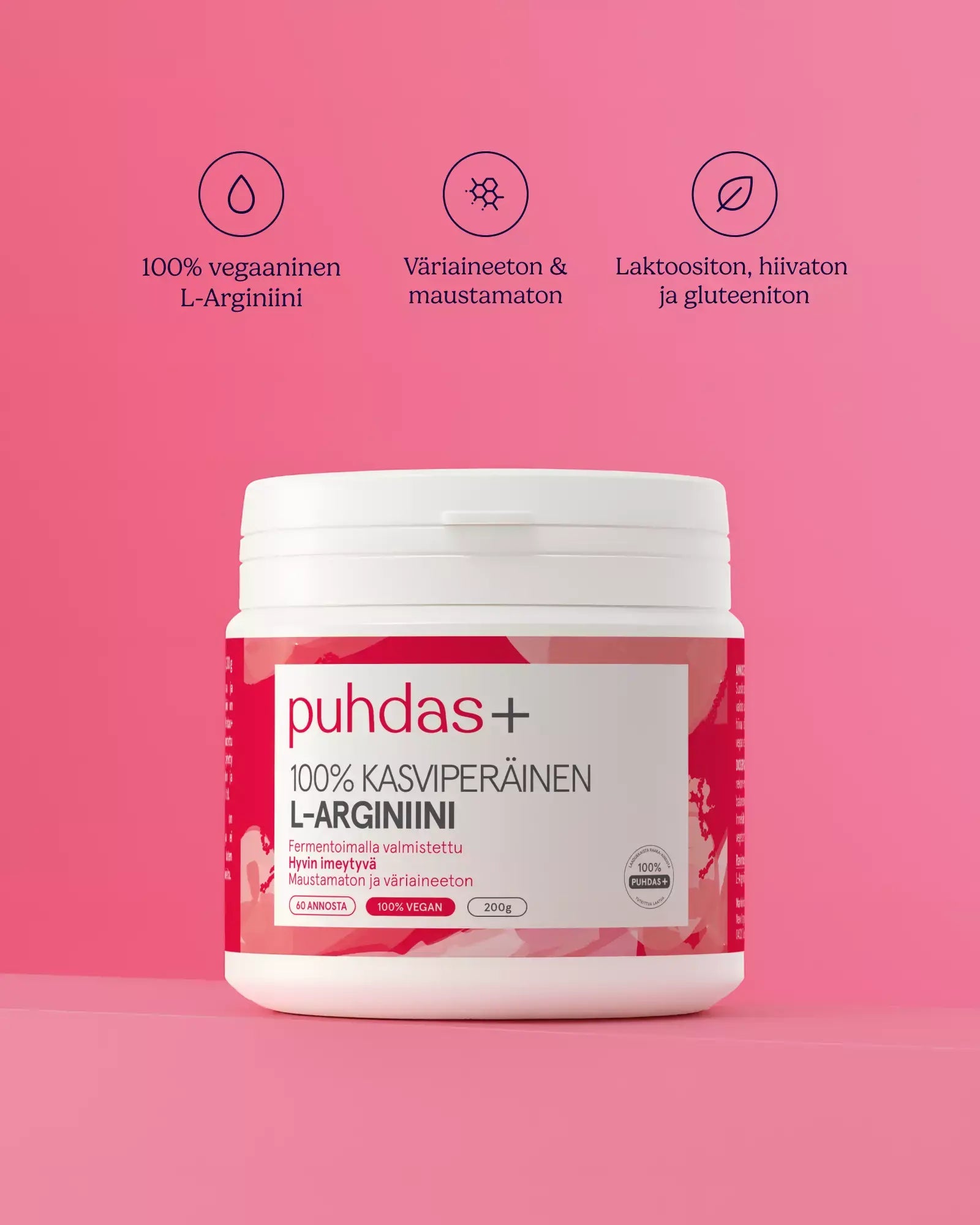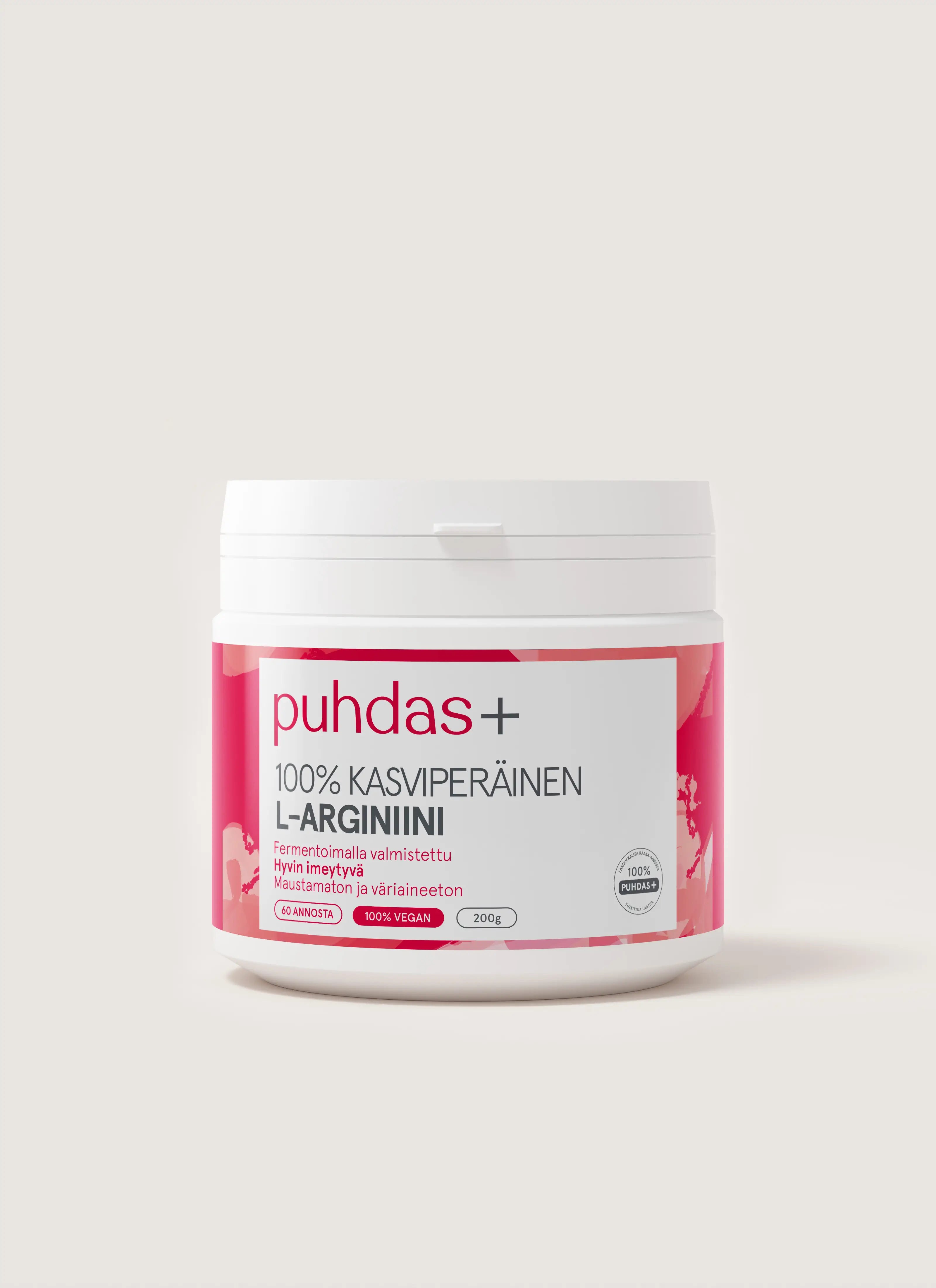 100% vegaaninen L-Arginiini tehokkaassa ja hyvin imeytyvässä vapaassa muodossa! Arginiini on kehossamme esiintyvä tärkeä aminohappo. Puhdas+ Arginiinijauheen sisältämä L-Arginiini on valmistettu fermentoimalla, eikä prosessissa ole käytetty eläinperäisiä ainesosia. Tuote on väriaineeton ja maustamaton. Pakkaus sisältää noin 60 annosta (1 tl).
